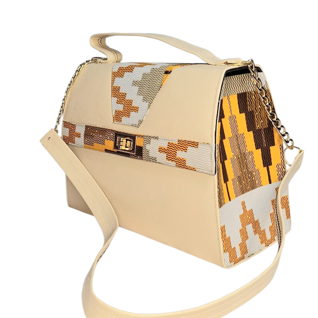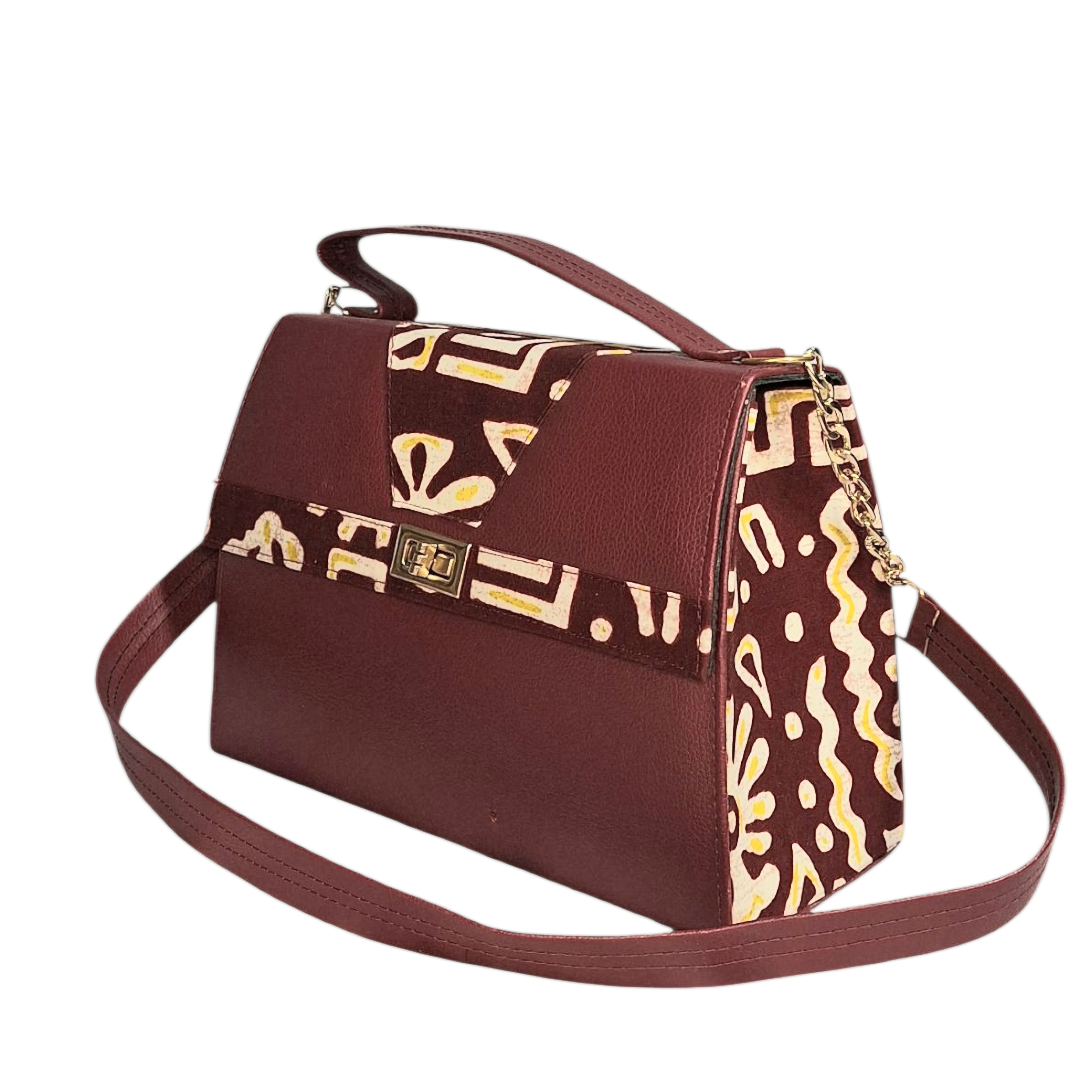 Sac à main Madjé 2 en cuir synthétique et tissu imprimé wax