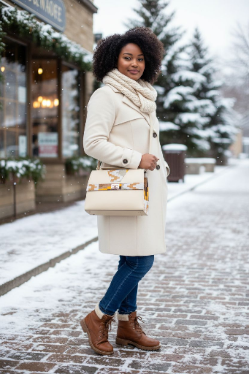 • Matière extérieure : Simili cuir texturé et tissu wax
