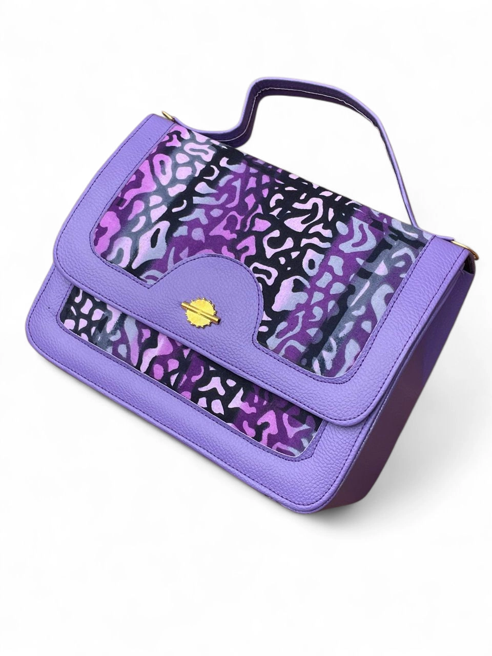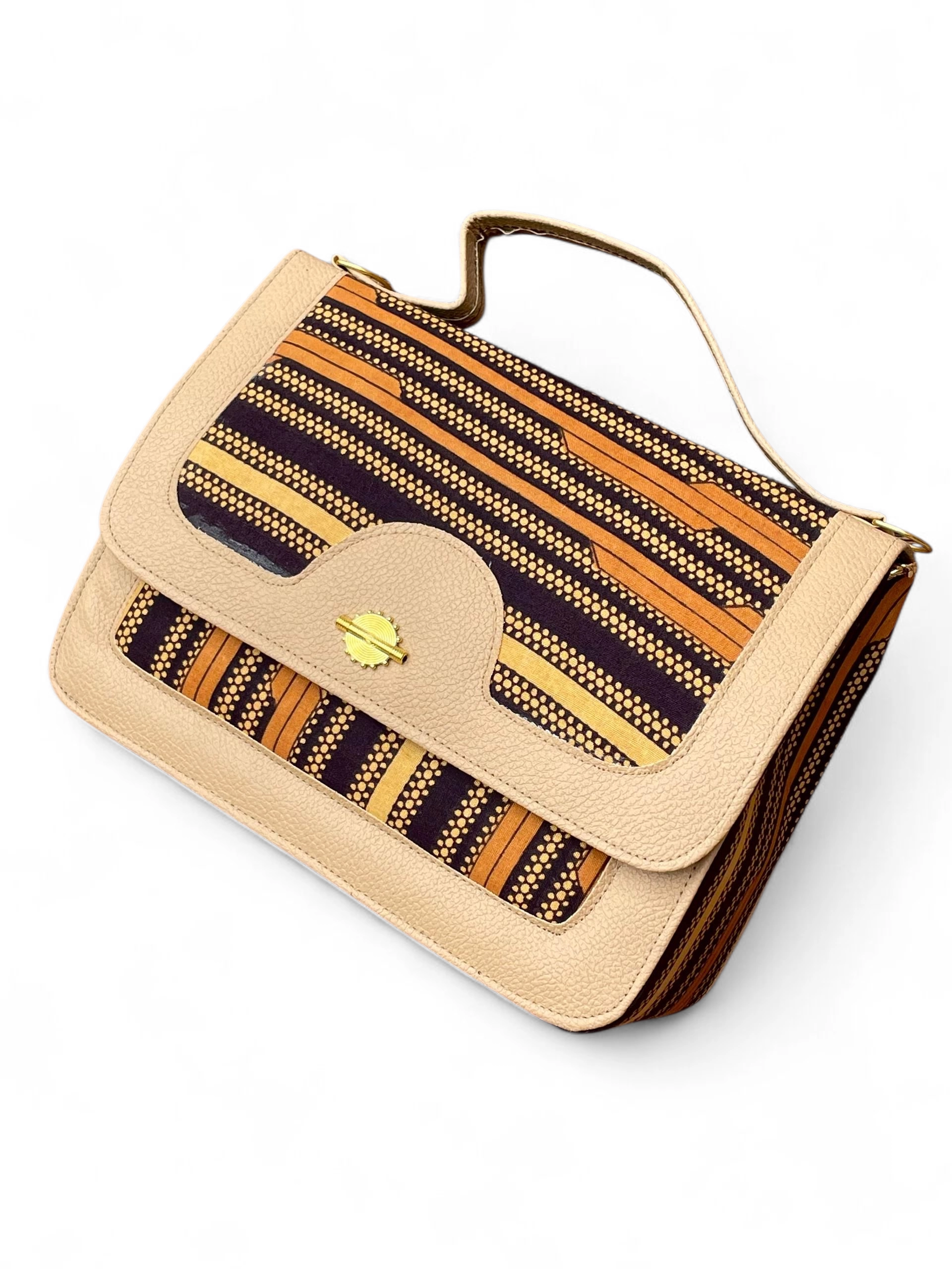 Sac à main Nagan 1 en cuir synthétique et tissu imprimé wax