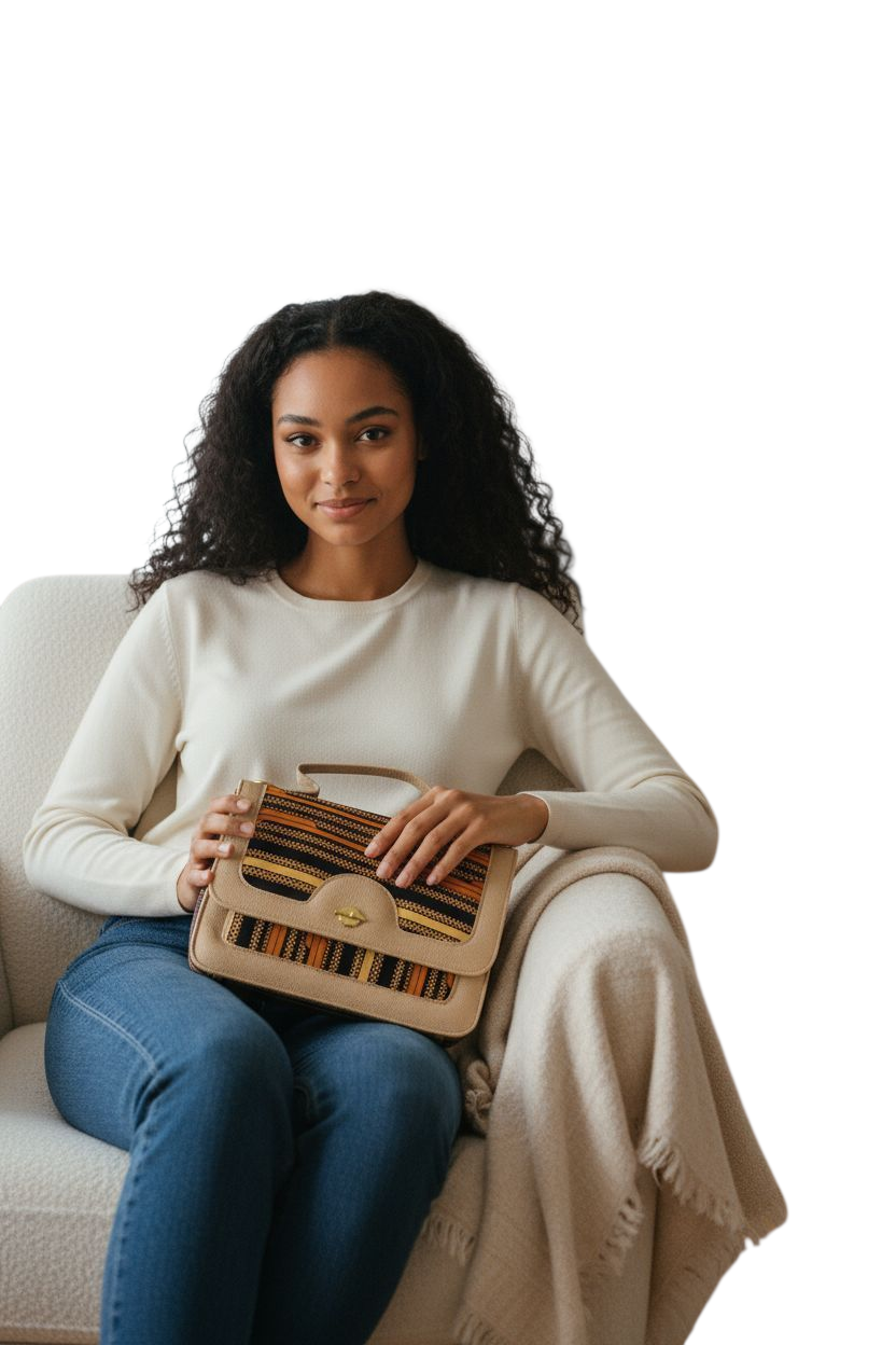 Raffiné et intemporel, ce sac à main allie élégance et originalité grâce à son mélange de simili cuir et de tissu aux motifs africains. Idéal pour vos journées de travail ou vos sorties, il vous accompagnera avec style tout en offrant un bel espace de rangement pour vos essentiels.